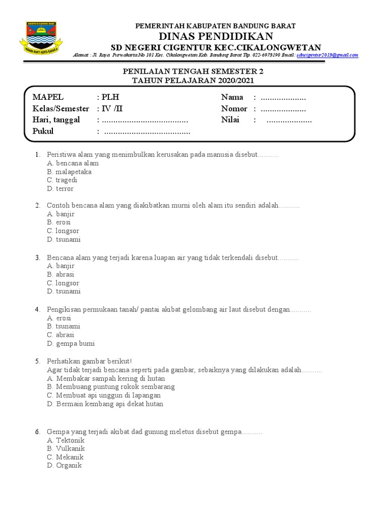 Soal uas pai kelas 5 semester 1 kurikulum 2013 revisi 2017 terdiri dari 50 soal pilihan ganda 15 soal isian dan 5 saol uraian singkat. Sebagai tempat nelayan mencari ikan dan udang d. Soal uts btq kelas 3 sd semester 2 yang bisa. On selasa november 28th 2017 by madesu. Soal plh kelas 3 sd semester 1. Bunga yang biasa digunakan sebagai hiasan sanggul pengantin adalah. Download soal uas kelas 2 semester 1 kurikulum 2013 ktsp. Oct 15, 2020 · bank soal ph, pts, pas kelas 4 semester 1 lengkap. Jangan lupa untuk tetap melihat berbagai informasi lainnya di bawah ini. Kunci jawaban soal uts soal pts pai kelas 3 sdmi semester 2 kurikulum 2013terbaruterlengkap. Kumpulan soal ph kelas 6 semester 1 dan 2. I s i a n. Admin kamis, 15 oktober 2020, 06:49 wib.