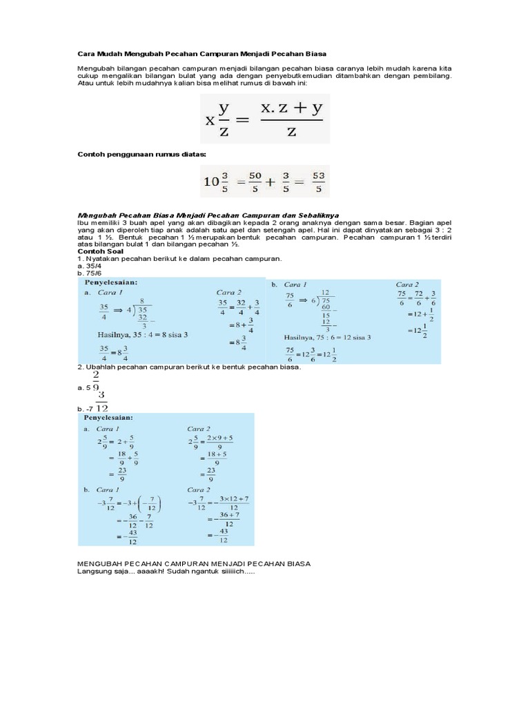 Cara Mengubah Pecahan Campuran Ke Pecahan Biasa Dan Sebaliknya from rumusonline.com Check spelling or type a new query. Maybe you would like to learn more about one of these? We did not find results for: